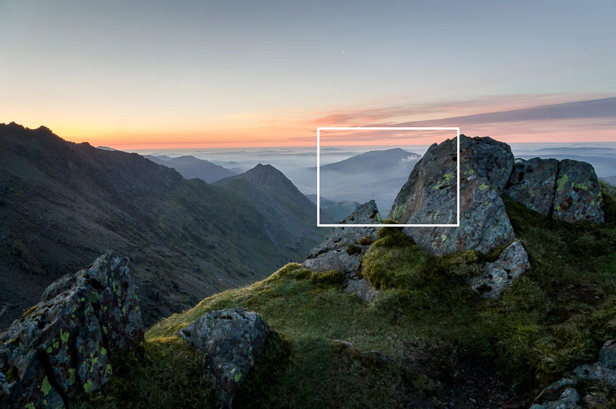 Zooming in on the area of the white box, you can see that the outline of the distant mountain (the background) is sharp but the rocks in front (the foreground) are not. I can't recall exactly what focus method was used but I'd imagine I left it on autofocus with a wide zone (i.e. a very common default setting) and the camera picked the background to focus on rather than the foreground. I used an aperture (f-number) of f11, which is appropriate for a landscape shot (if it was less than f8 then that could be a contributory factor). If there was no foreground in my composition then I would have got away with this scenario but the foreground is very prominent here so it's very noticeable. Just in case you think you can save this with software sharpening - you can't. Software can only enhance what's there originally, not make unsharp photos sharp again. Any attempt to do this will only be a rescue job at best - you may think you've made it better but when you contrast it with an area that was in focus properly to begin with, then you'll realise what I mean - see below!